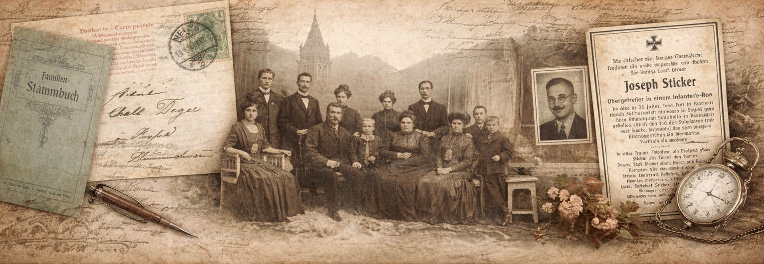 Ich verfüge über 40 Jahre Erfahrung in der Familienforschung und kenne die Quellen und Archive im Rheinland bzw. der ehemaligen preußischen Rheinprovinz.